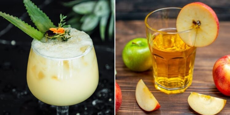 Elma, mürver çiçeği ve nane aromalı köpüklü içecek