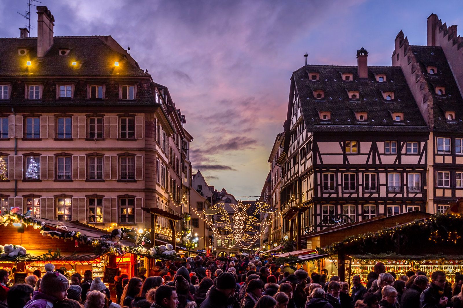 Strazburg’a adım attığınız an, kendinizi sanki yıllar öncesinden çıkmış bir kartpostalın içinde bulursunuz. Ahşap çerçeveli evlerin arasına yerleşmiş pazar tezgahları, daracık sokaklara eski bir masal havası verir. Bu atmosfer tesadüf değildir çünkü Strazburg’un Noel pazarı Avrupa’nın en eski örneklerinden biri olup kökleri 1570 yılına kadar uzanır. Place de la Cathedrale ve Place Broglie, yiyecek ve hediyelik alışverişi için en hareketli alanlardır.