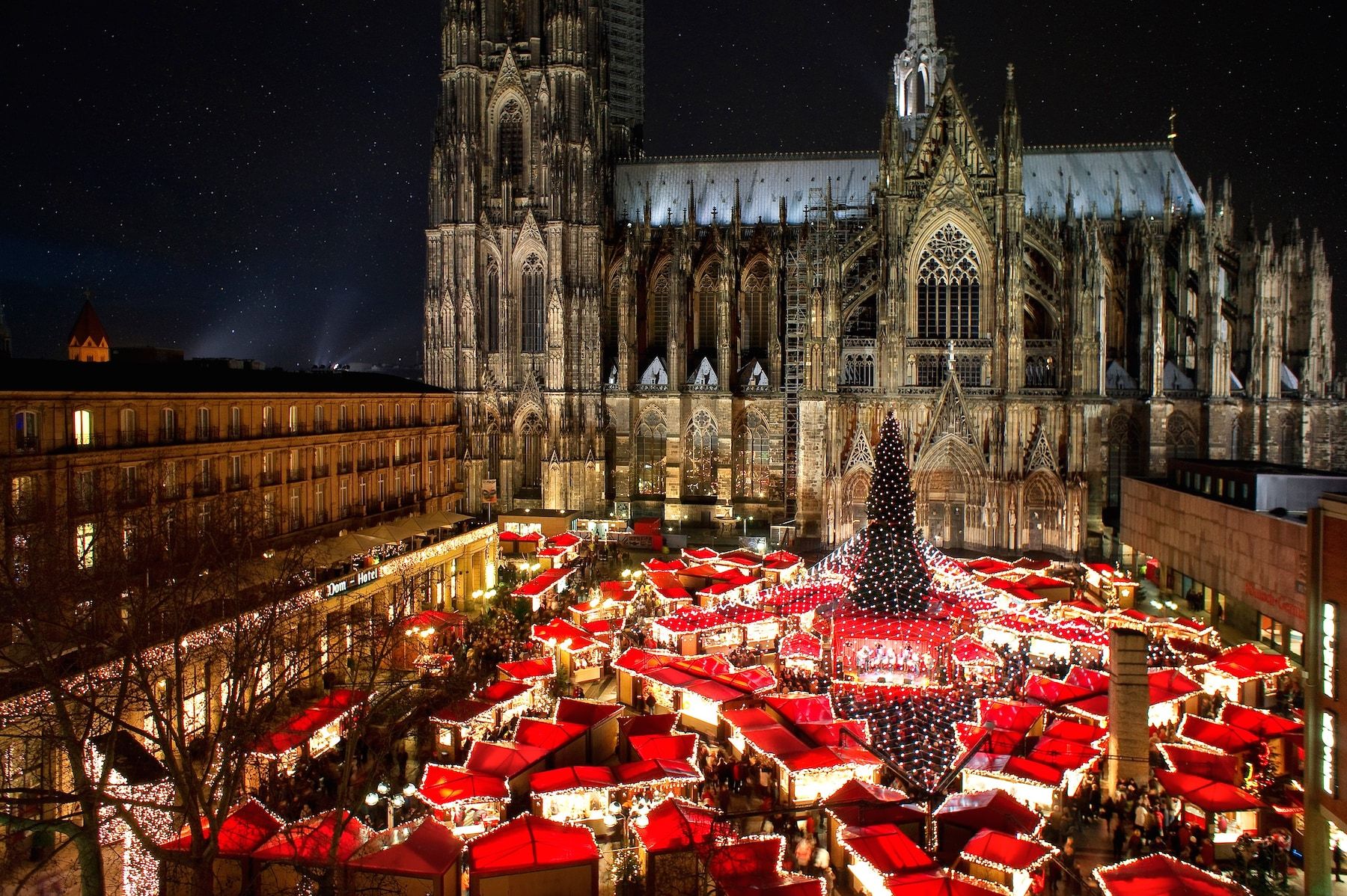 En güzel noel pazarları listemize başlıyoruz. Köln denince akla gelen ilk görüntü devasa Kölner Dom olur ve Noel zamanı bu manzara daha da etkileyicidir. Şehrin en bilinen Noel pazarı tam da bu katedralin eteklerinde, dev bir ağacın göğe uzanan dalları altında kurulur. Ahşap dağ evi tarzındaki minik şaleler pazarın etrafında sıralanır ve her köşede canlı performanslar duyulur. Aslında Köln sadece bir pazarda sınırlı kalmaz, şehirdeki 11 farklı pazar, yılın bu dönemini adeta bir şölene çevirir.