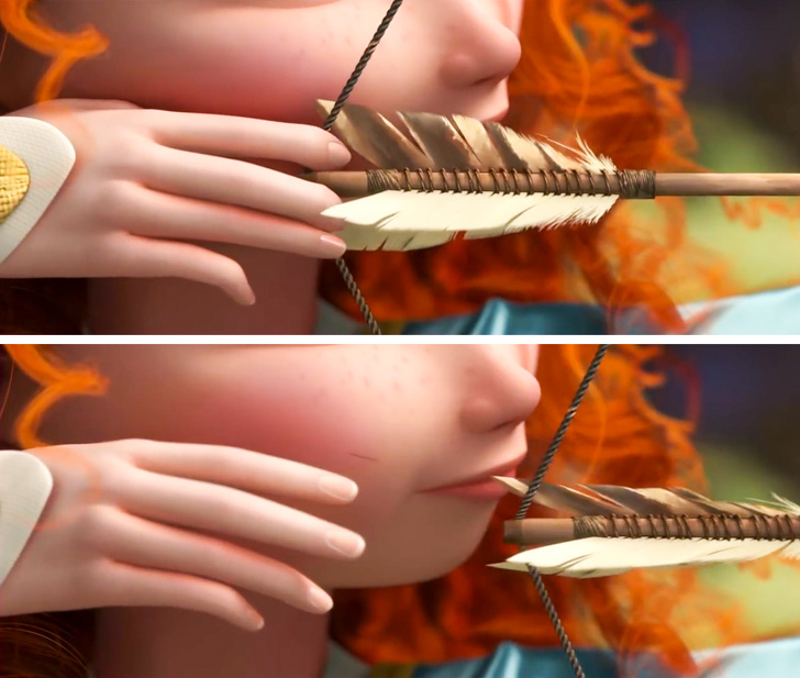 Filmde Merida’nın attığı üçüncü ok, yanağında küçük bir iz bıraktı.