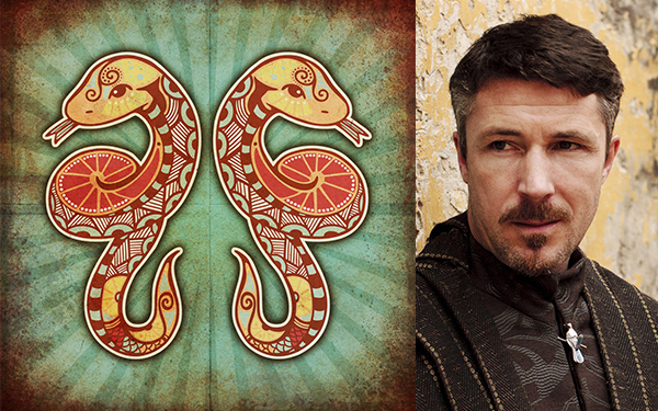 Petyr Baelish; entirikalardaki ustalığı, ticarette ve para konularındaki yeteneği ve zekasıyla ikizler burcu özellikleri taşır. Çevirdiği entrikalar, ikizler burcunun en belirgin çift karakterli olma özelliğini yansıtır.