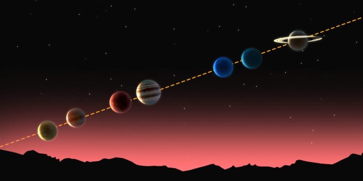 Bu olay, gezegenlerin uzayda fiziksel olarak yan yana gelmesi anlamına gelmiyor. Astronomide gezegen hizalanması ya da yaygın adıyla “planetary parade”, gezegenlerin Dünya’dan bakıldığında ekliptik düzlem boyunca aynı hat üzerinde sıralanmış gibi görünmesi durumunu ifade ediyor. Şubat ayının son günlerinde Merkür, Venüs, Satürn, Jüpiter, Uranüs ve Neptün bu görsel hizalanmayı oluşturacak.