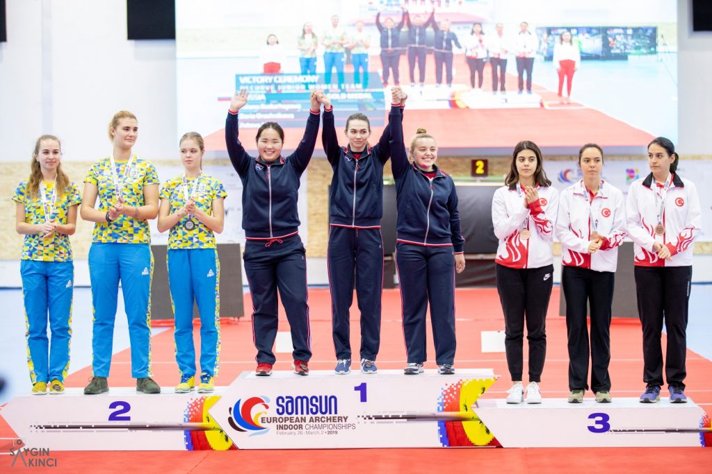 Sevcan Derin, Gökçe Demirel ve Elif Nida Güner’den oluşan Klasik Yay Genç Bayan Takımımız İtalya ile yaptığı ve 5-4 biten karşılaşma sonucu Bronz Madalya kazandı