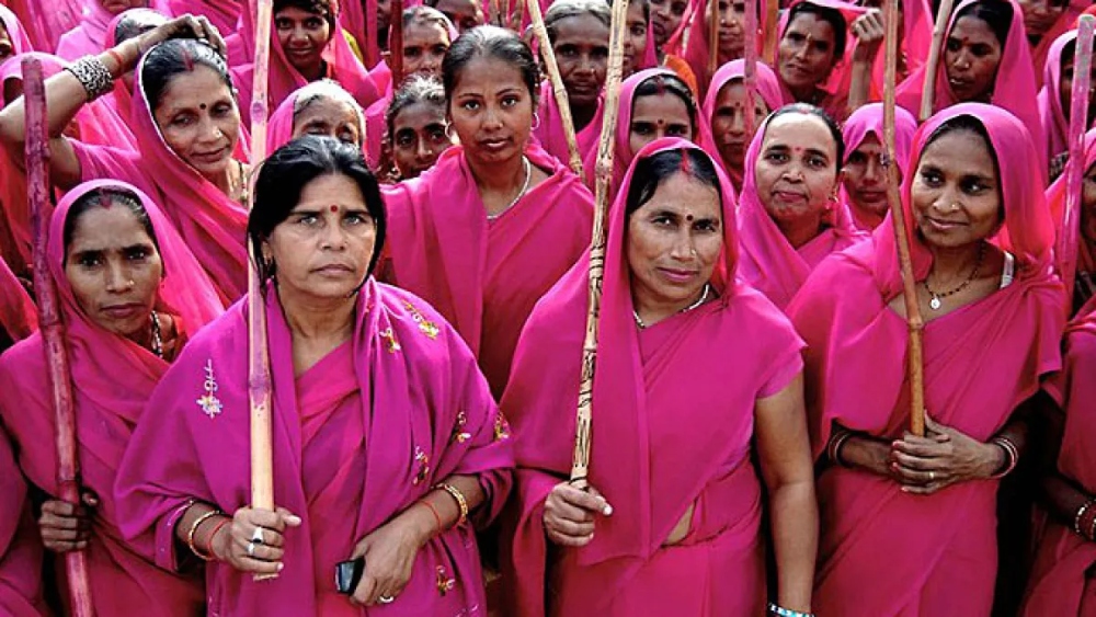 Gulabi Gang, adını üyesi olan kadınların giydiği pembe sarilerden alıyor