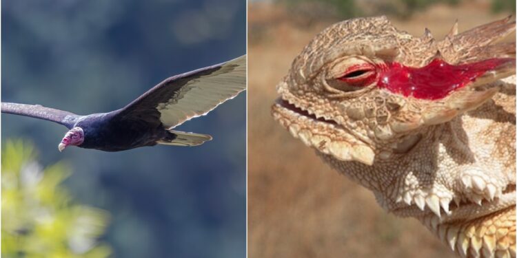 Savunma repertuvarında çıtayı yükselten türlerden biri de boynuzlu kertenkele. Tehlike anında göz çevresindeki damarları genişleterek gözlerinden kan fışkırtabiliyor. Bu kan birkaç metre uzağa kadar sıçrayabiliyor ve özellikle memeli avcıları şaşırtarak geri püskürtüyor.