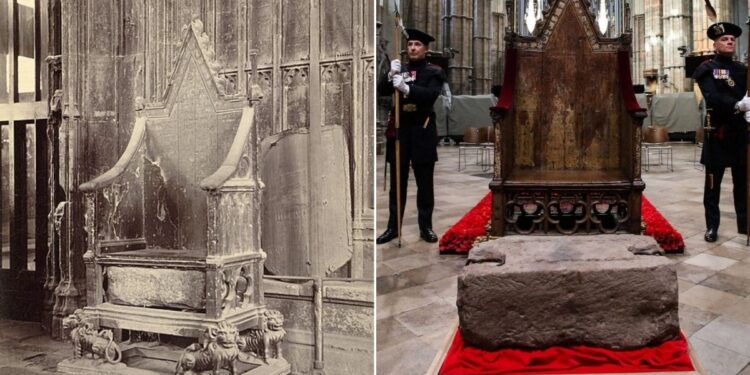 1066’dan bu yana tüm hükümdarların taç giydiği bu görkemli yapıda, bir köşede sade görünümlü ama tarihin yükünü taşıyan bir mobilya durur: Taç Giyme Sandalyesi. 1296’da İskoçya’yı fetheden Kral I. Edward, kader taşını Scone Manastırı’ndan getirip bu sandalyenin altına yerleştirdi. Böylece taş, İngiliz krallığının gücünü simgeleyen bir platformun parçası haline geldi. Yüzyıllar boyunca III. Charles’tan II. Elizabeth’e kadar tüm hükümdarlar, o taşın üzerinde oturarak tacını giydi.