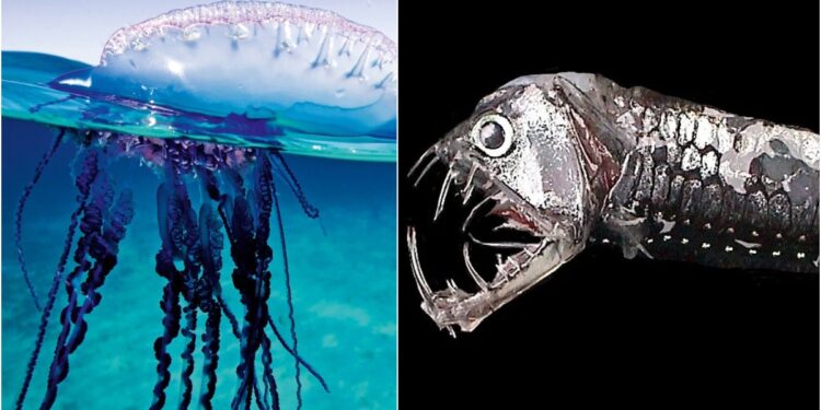 Okyanus geniş ve derin bir dünya. Bu nedenle burada yaşayan canlıların tamamını biz bilmiyoruz. Denizler, yüzeyden kilometrelerce aşağıya uzanan karanlık ve bilinmeyen katmanlarla dolu. Bu kadar gizemli bir ortamda yaşamını sürdüren canlıların bazıları yalnızca garip değil, uzun süre düşündüğünüzde tüylerinizi ürpertecek kadar tuhaf ve korkutucu özelliklere sahip. Aşağıda göreceğiniz canlılar, gerçek hayatta var olan ama görünüşleri, avlanma yöntemleri veya doğadaki rolleri nedeniyle insan zihninde “korkutucu” çağrışımlar yaratan türlerdir. Listede yer alan bu hayvanlar; olağanüstü anatomik yapıları, alışılagelmişin dışında avlanma stratejileri veya zehirli saldırı yetenekleriyle okyanusun ürkütücü tarafını temsil ediyor. İşte korkunç deniz canlıları ve özellikleri…