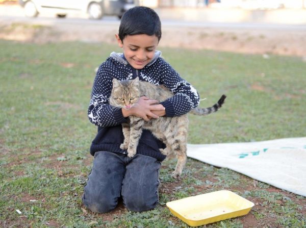 Kilis’de yaşayan Hüseyin el Hasan araba çarpan bir köpeğin köşede titreyerek can çekişmesine kayıtsız kalamıyor ve bir koşu evine gidip bir battaniye ile soğuk havadan dolayı titreyen köpeği örterek başında nöbet tutuyor.