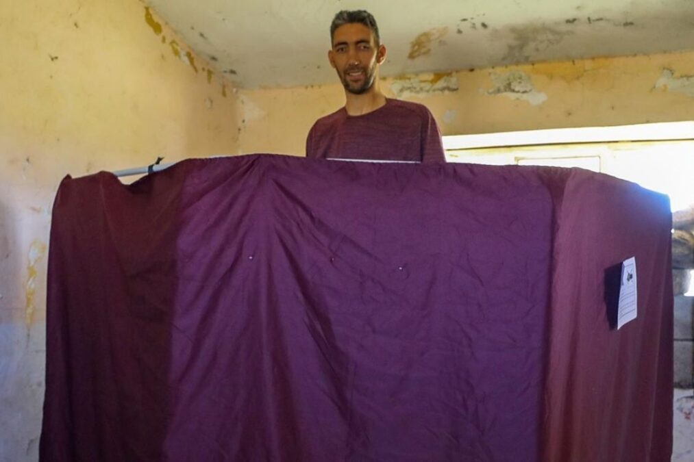 5. 2 metre 51 santimetre ile “dünyanın en uzun insanı” unvanına sahip olan Sultan Kösen, Mardin’de oy verirken kabin içerisine sığamadı