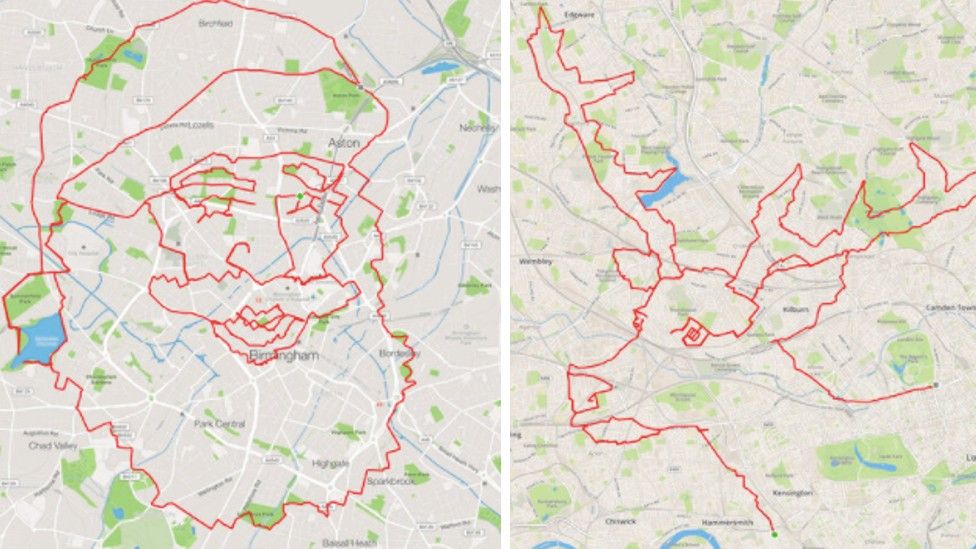 Daha önce de rotasıyla West Midlands boyunca bir Noel Baba yüzü ve Londra’nın üzerinde bir ren geyiği kafası çizdi