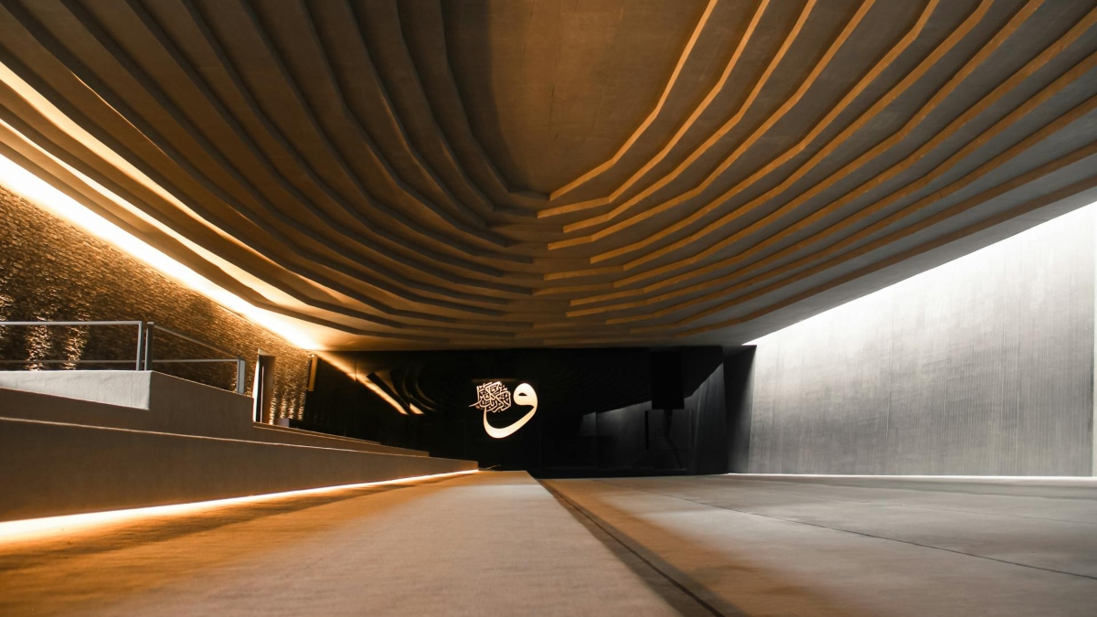 İçerideki karanlık aydınlık dengesi ibadet alanını dramatik bir sahneye değil, sakin bir “içsel alan”a dönüştürür. Bu yaklaşım cami mimarisinde alışılmış süsleme ve görsel yoğunluğun yerine sessizliği merkeze alır.