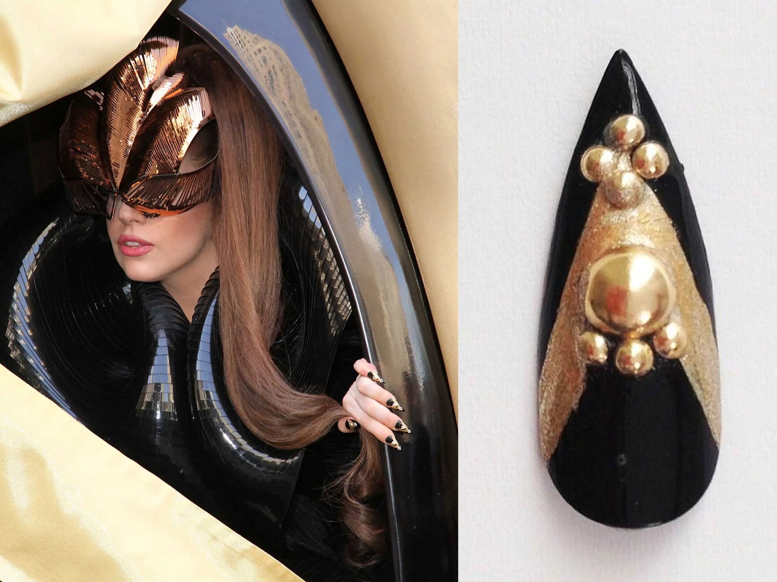 Lady Gaga denince akla sıra dışı sahne kostümleri ve iddialı aksesuarlar geliyor. 2013 yılında satışa çıkan bir akrilik tırnak da tam olarak bu imajın bir uzantısıydı. Siyah renkte, altın sim ve boncuk detaylarıyla süslenmiş bu tırnak, şarkıcının Fame adlı parfüm lansmanı döneminde kullandığı tasarımlardan biriydi. Tırnağın, Gaga’nın manikür sanatçısı Aya Fukuda tarafından özel olarak hazırlandığı belirtilmişti.