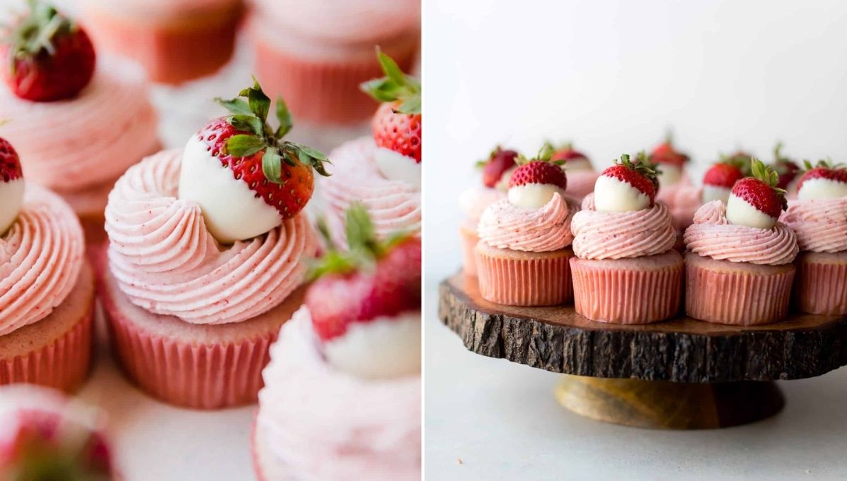 6. Beyaz çikolatalı çilekli cupcakeler