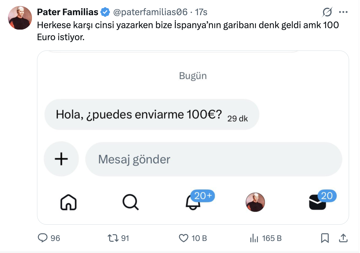 — Pater Familias (@paterfamilias06) March 5, 2026ispanya ile dostlugu iyice pekiştirip vizesiz giriş anlaşmaşını imzalatırsak barcelona sokaklarında biz📍