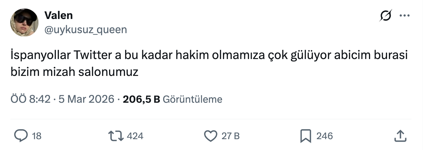 Tabii Türk internet kullanıcılarının mizah gücü devreye girince ortaya tam anlamıyla bir tweet şöleni çıktı. Kimi “akdeniz kardeşliği” ilan etti, kimi İspanyollara Türk dizileri önerdi, kimi de iki ülkenin aslında sandığımızdan çok daha benzer olduğunu kanıtlamaya çalıştı. İspanyol kullanıcılar da geri kalmadı ve karşılıklı atışmalar giderek daha eğlenceli bir hal aldı. Kısacası sosyal medyada başlayan bu beklenmedik Türkiye İspanya etkileşimi kısa sürede herkesin yüzünü güldüren bir dostluk hikâyesine dönüştü. Biz de timeline’ı şenlendiren, iki ülkenin kullanıcılarını adeta “internet kardeşi” yapan o birbirinden komik tweetleri sizin için derledik. Hazırsanız başlayalım.