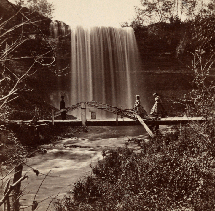 18. Minnehaha Şelalesi ve üzerindeki köprü, Minnesota, 1860.
