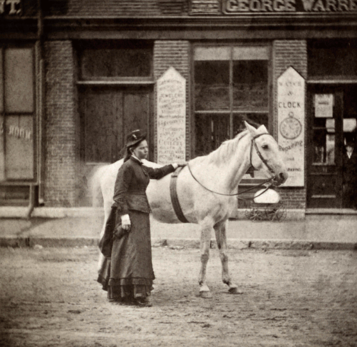 16. Bir kadın ve atı, Connecticut, 1800’lerin sonları.